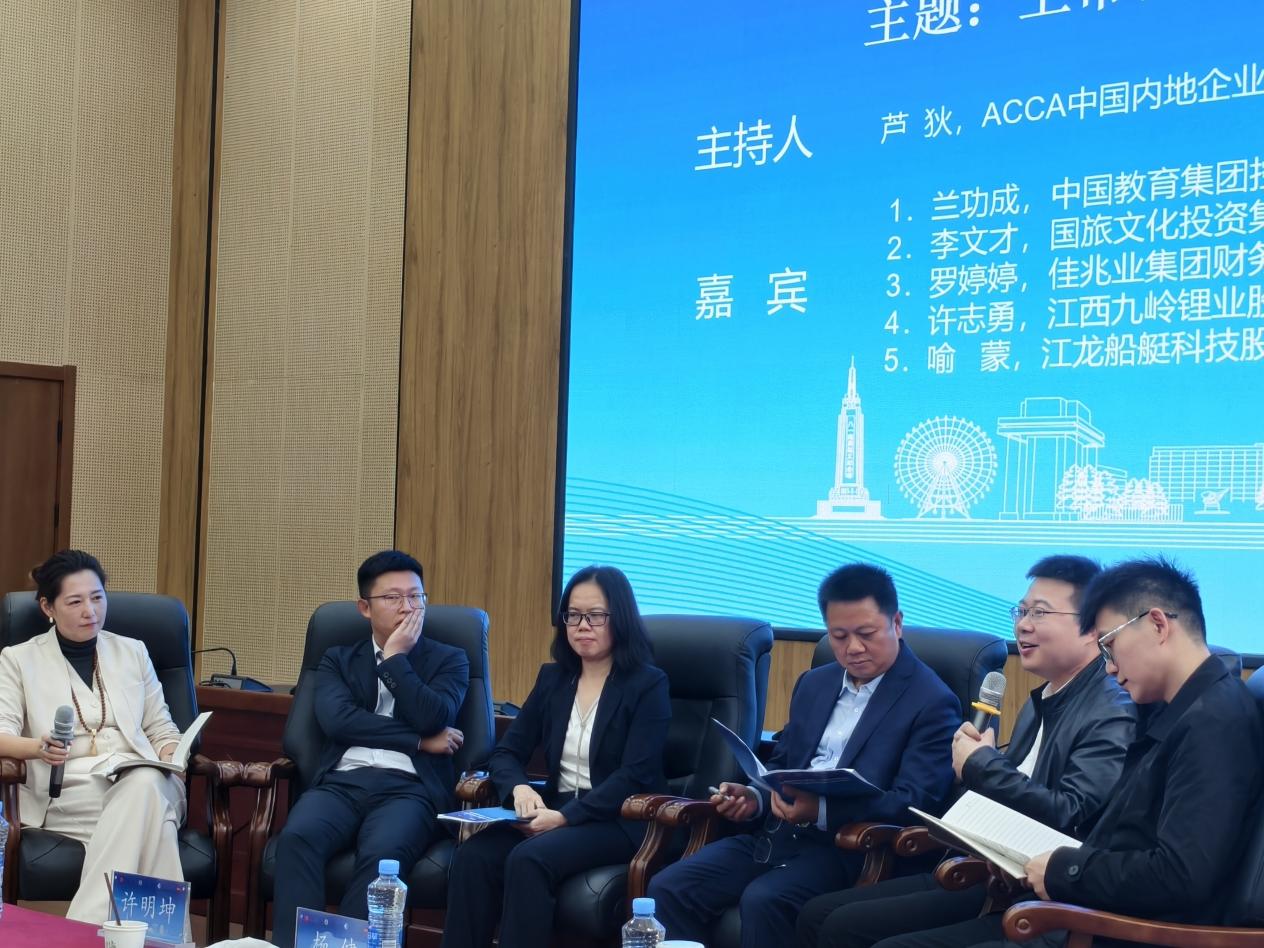 第三阶段为CFO圆桌论坛。论坛由ACCA中国内地企业关系主管芦狄主持,中国教育集团控股有限公司财务总监兰功成、国旅文化投资集团股份有限公司财务总监李文才、佳兆业集团财务总监罗婷婷、江西九岭锂业股份有限公司财务总监许志勇、江龙船艇科技股份有限公司财务总监喻蒙共同参与,围绕“上市公司ESG实践与创新”主题进行深入讨论,分享了具有行业特色的ESG实践创新成果,并一致认为,ESG正经历从理念认知到价值创造的根本性转变,财务职能在其中发挥着关键战略作用。