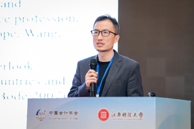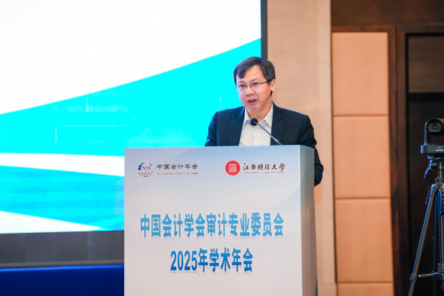 (图为中国会计学会审计专业委员会主任委员吴联生致辞)